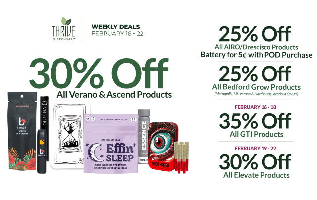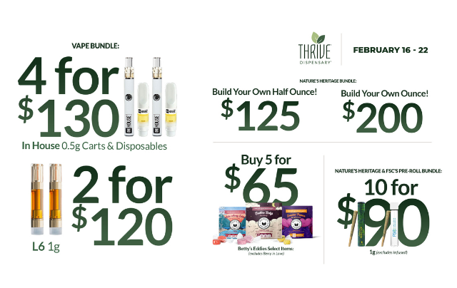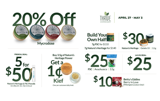 One of the ways Thrive Dispensary helps you live your best life is with value. We’re proud to offer customers these amazing dispensary deals & discounts all day, every day: